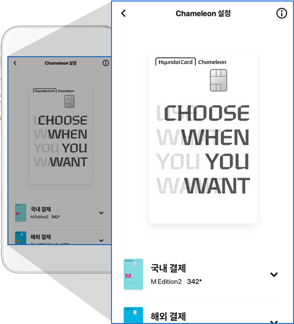 내가 보유한 여러 장의 현대카드를 한 장의 카드에 담아 현대카드 앱을 통해 원하는 혜택의 카드로 선택해 이용
